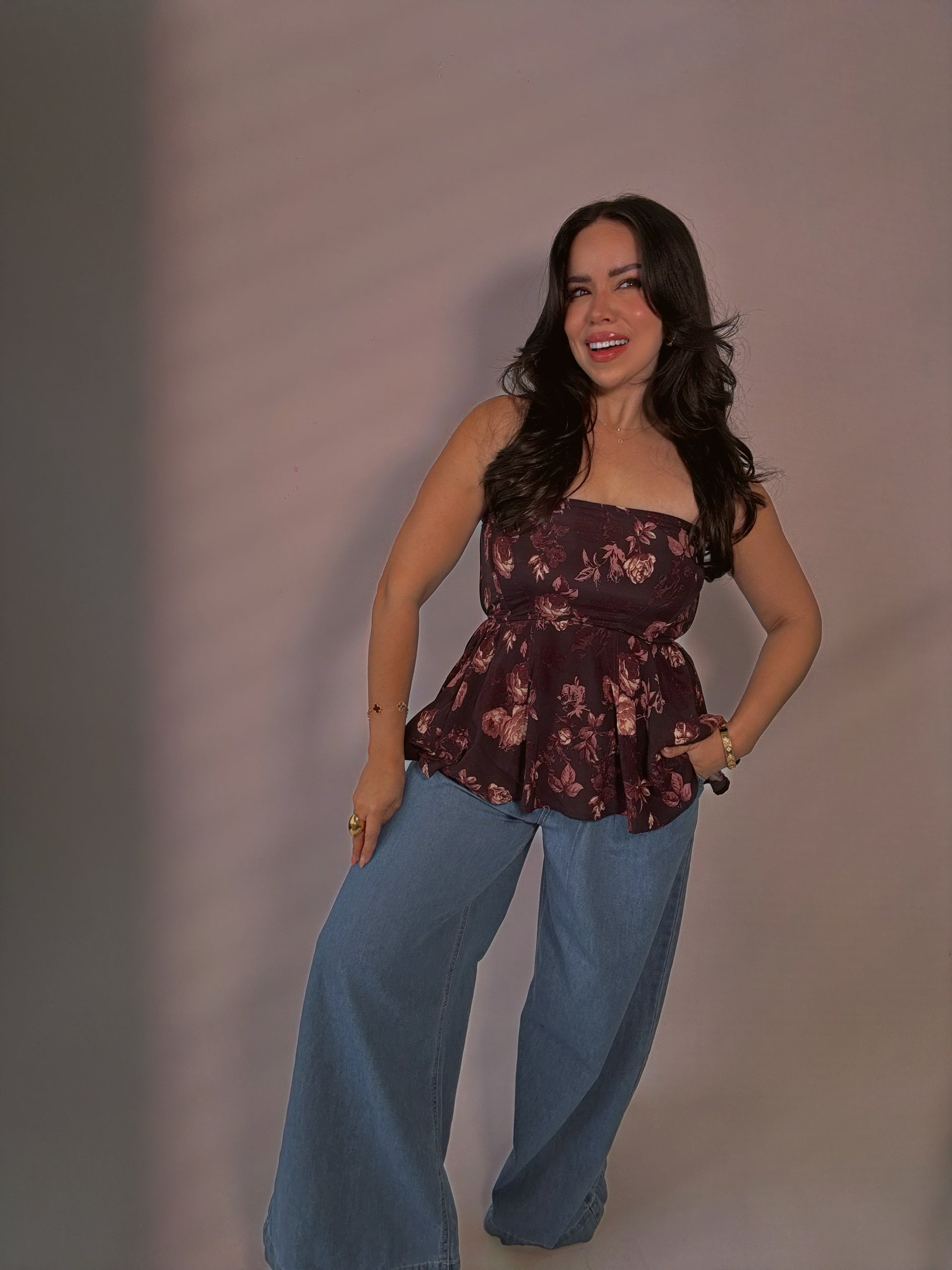 Strapples Top con cierre de zipper en la espalda. Cuenta con elástico. Corre al Size.