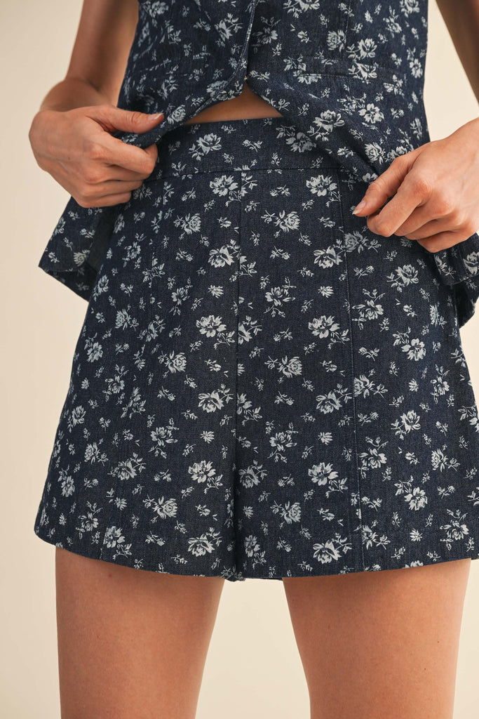Hermoso Set en indigo denim. Consta de vest largo que cierra con botones y short de cierre de zipper y elástico en cintura. Si estas entre talla sube un size para un ajuste perfecto. No spandex.