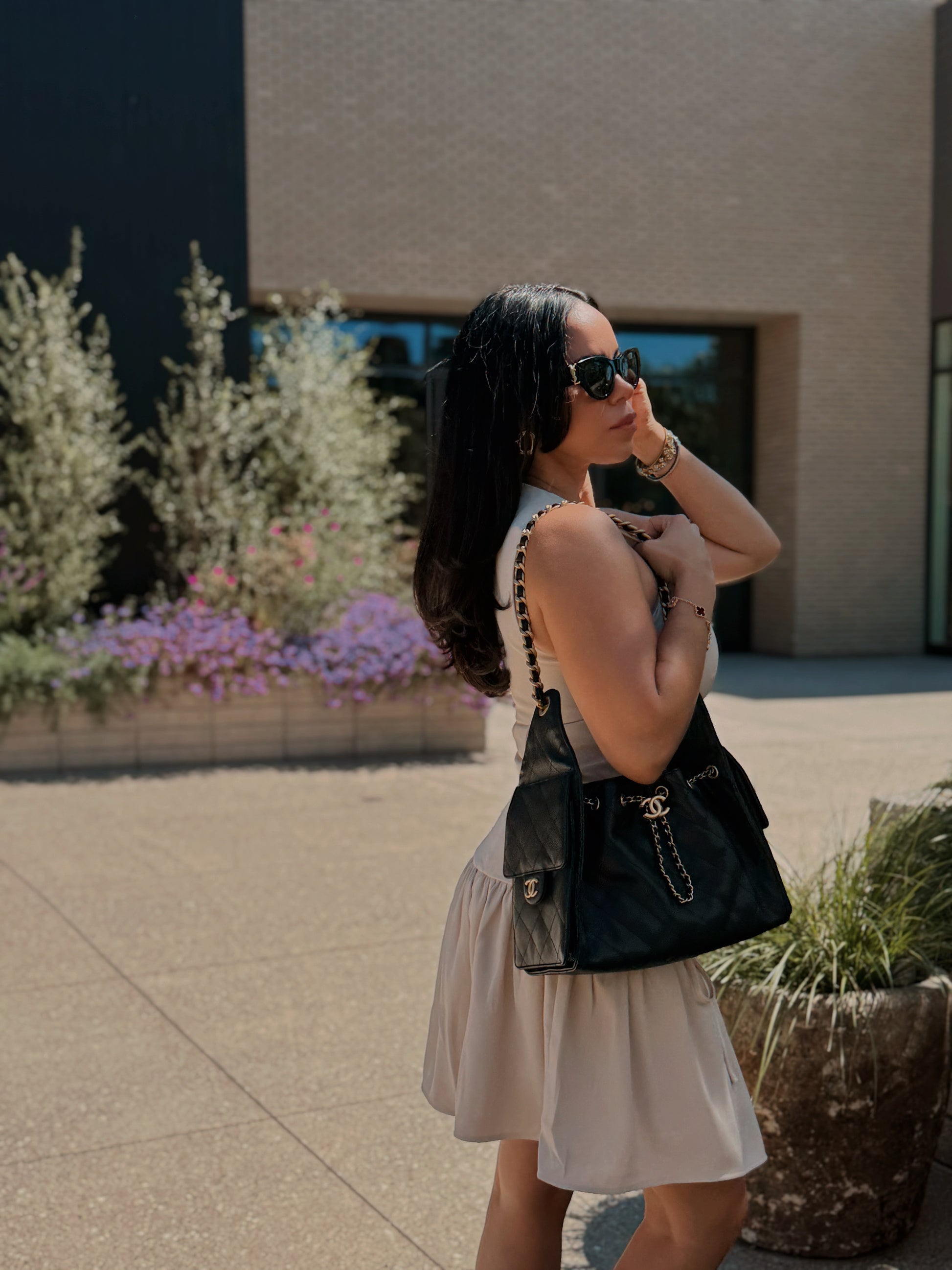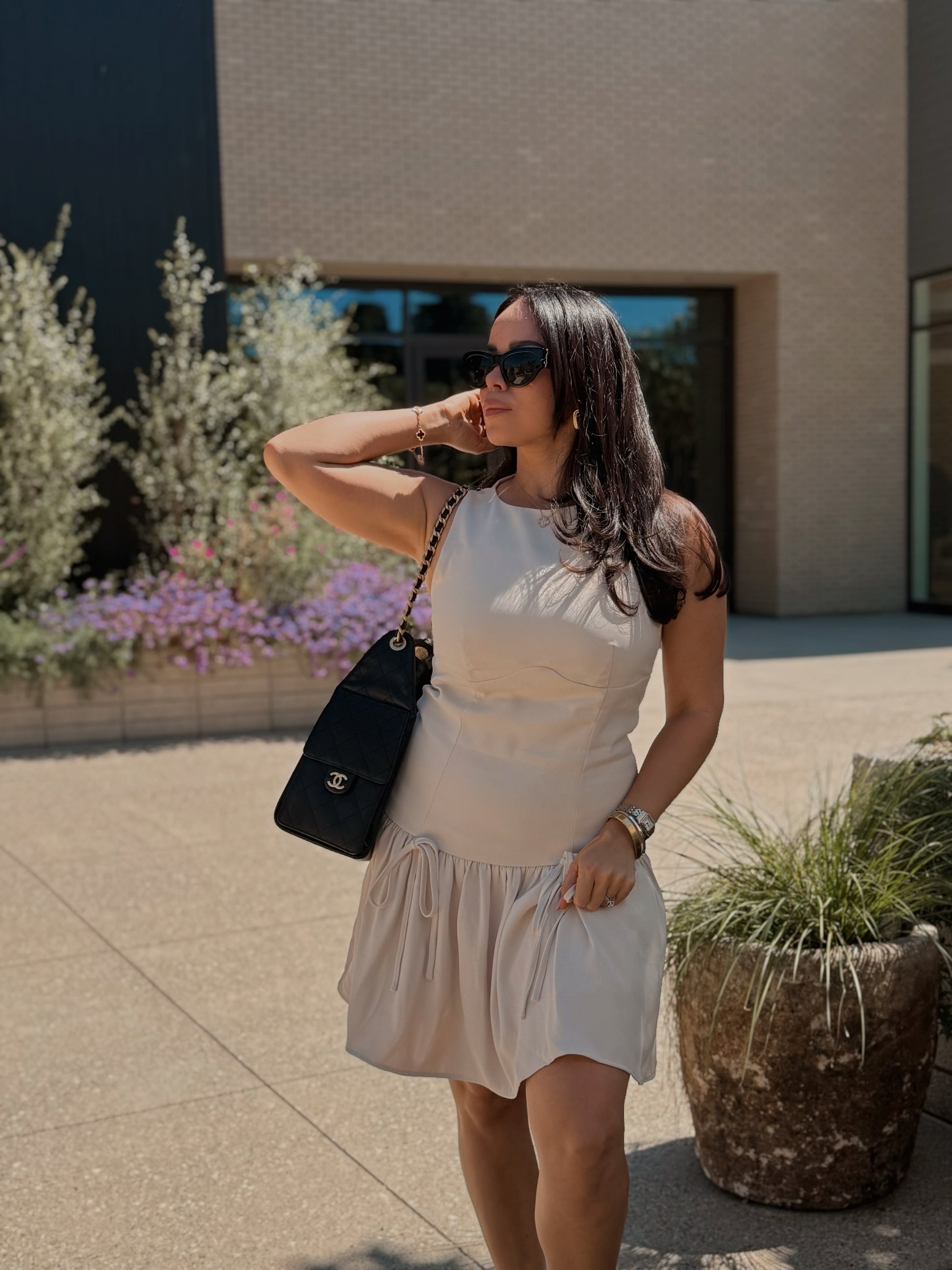 Confeccionado en un tono beige suave, es una pieza versátil que puedes usar tanto de día como de noche. El cierre invisible en la parte posterior asegura un fit pulido y limpio. Llévalo con tus flats favoritas para un brunch en la ciudad o con tacones y clutch para una cena al atardecer en la costa.