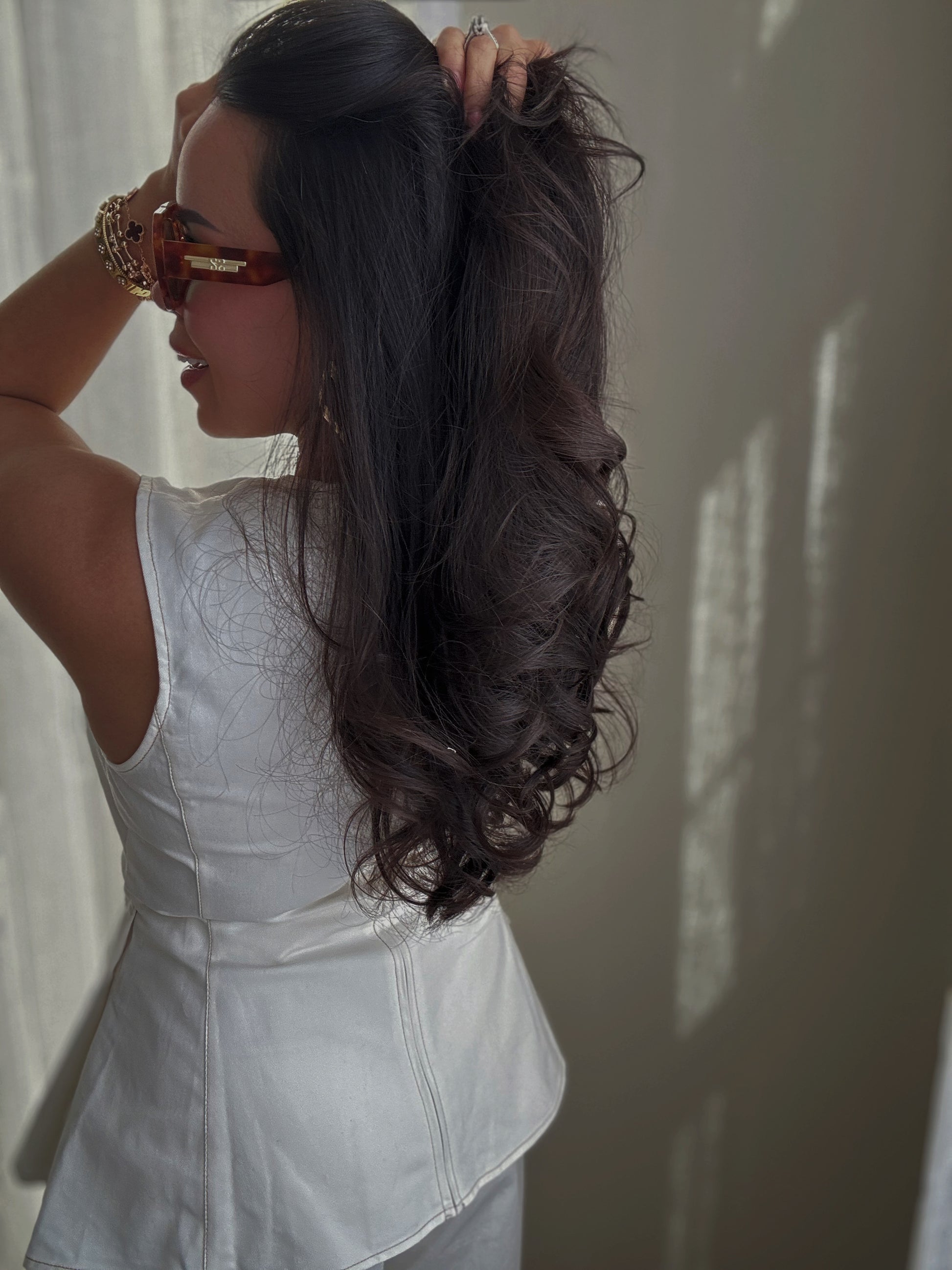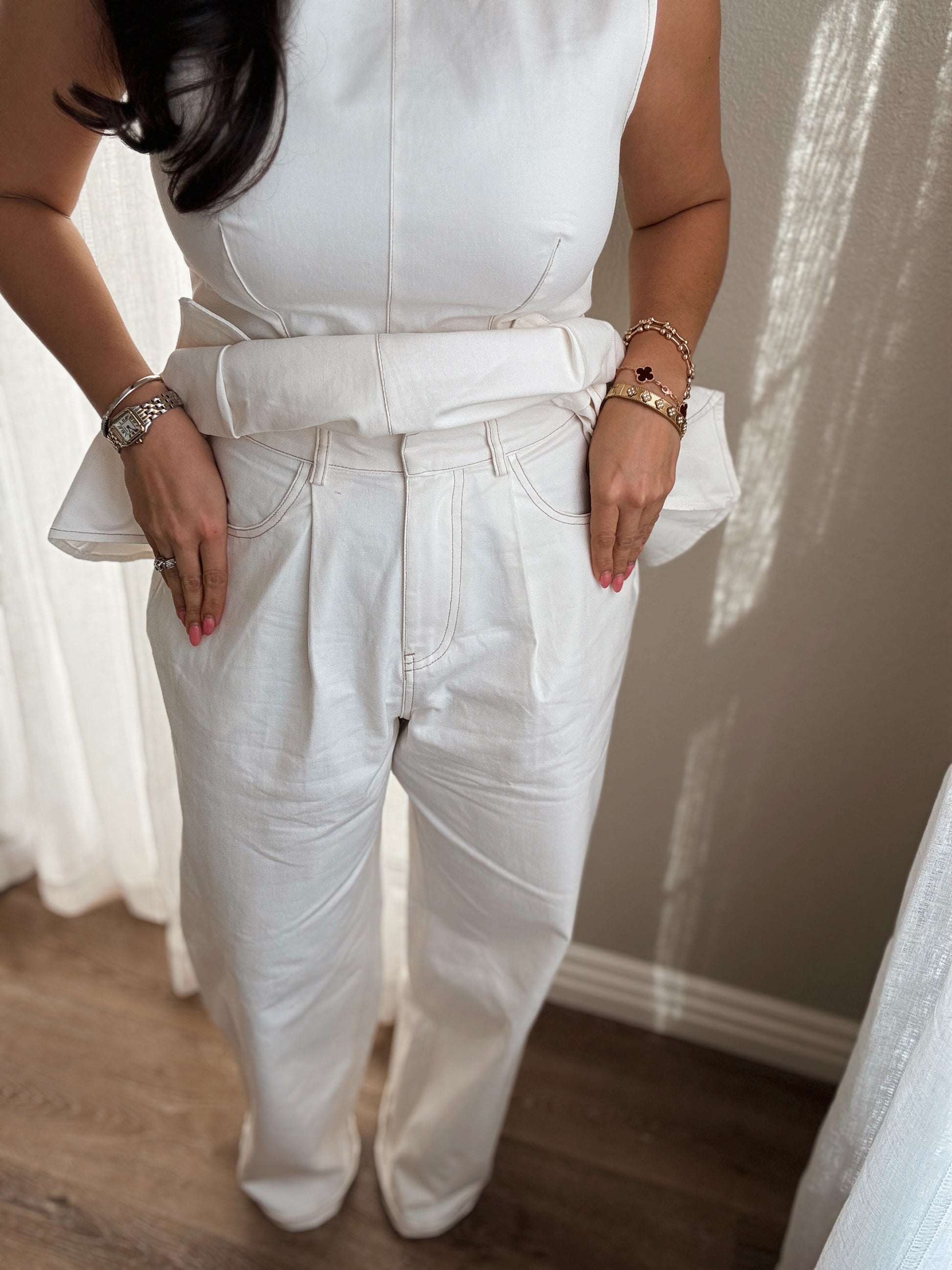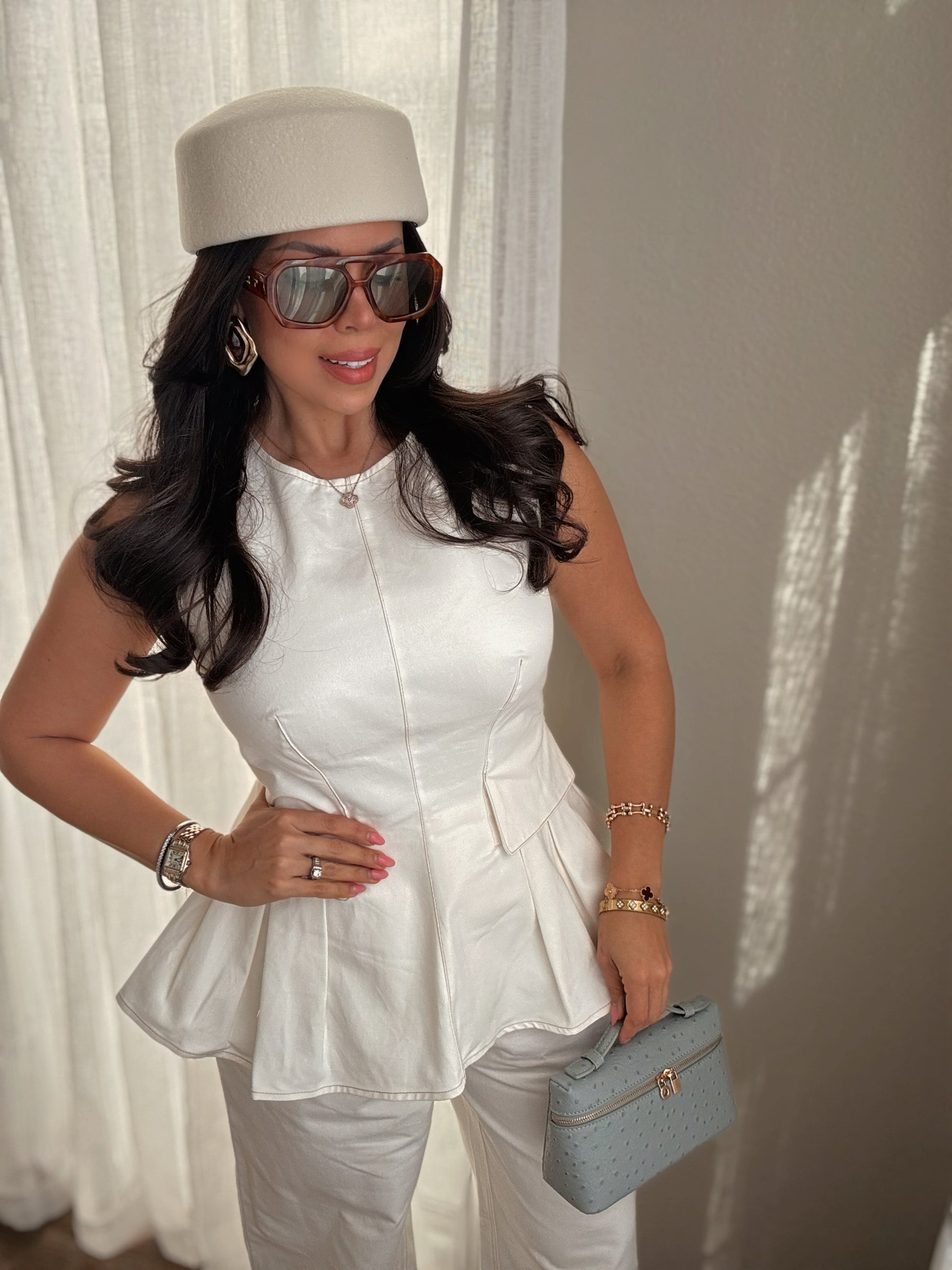 Set de Linea Exclusiva incluye Top estructurado estilo peplum que define la cintura y realza la figura, con cierre de zipper en la espalda para un ajuste limpio y elegante.