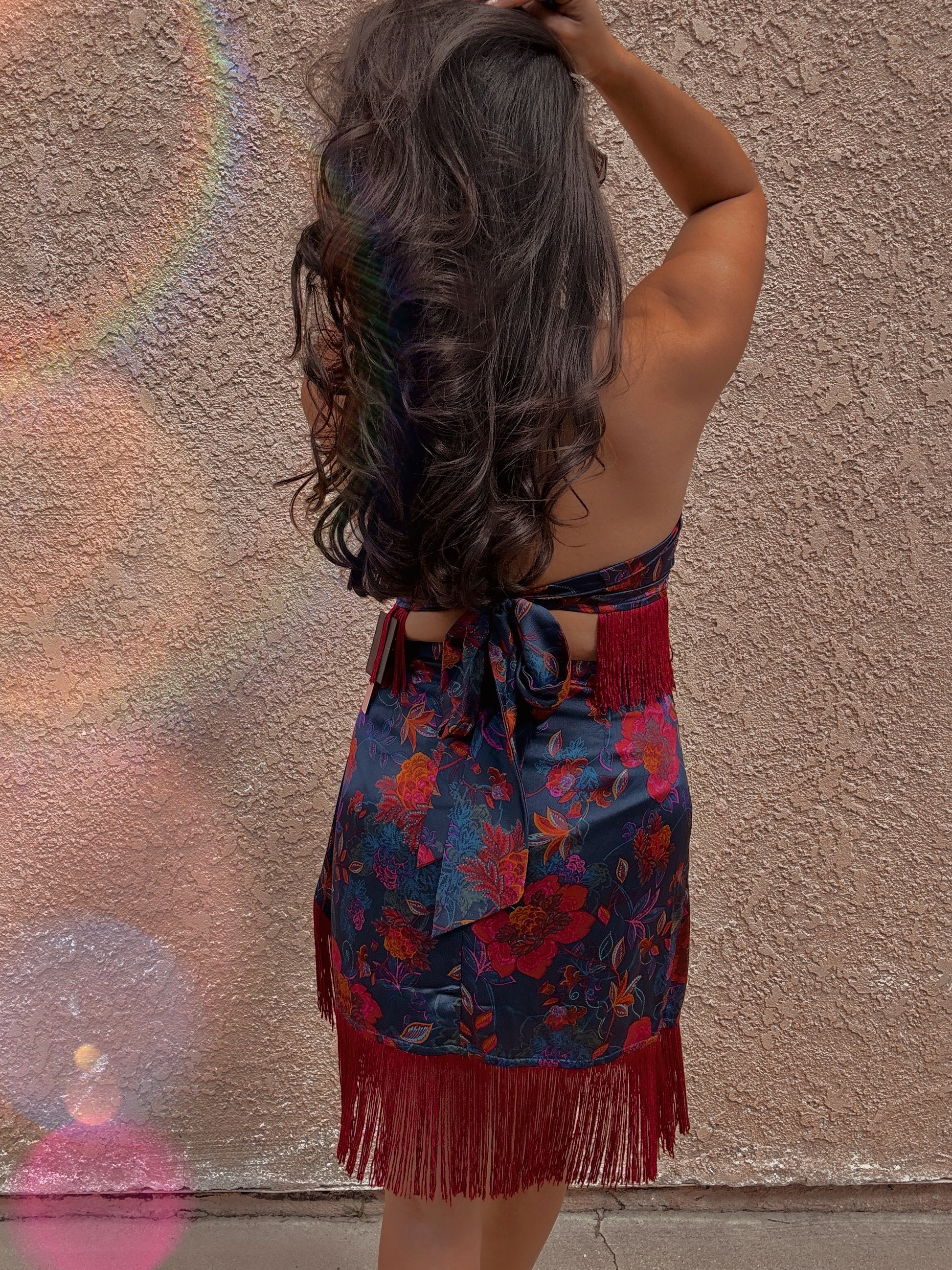 Set de 2pcs. Top Halter que se amarra con laso en la espalda y Falda de talle alto, cierra con zipper en la parte de atras. Corre al size.