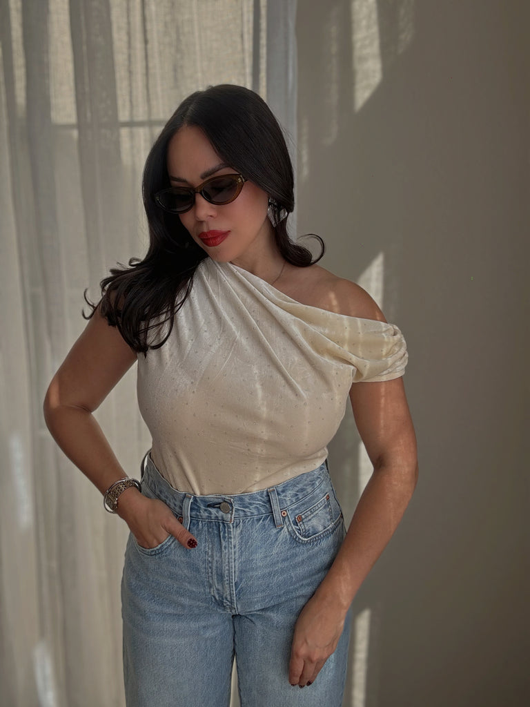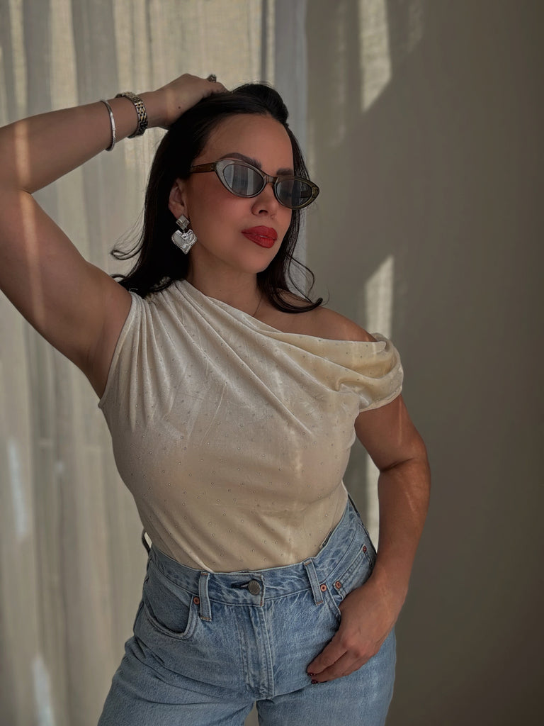 Nuevo Top en velvet asimétricos con detalles rhinestones. Corre al Size, estira no zipper.